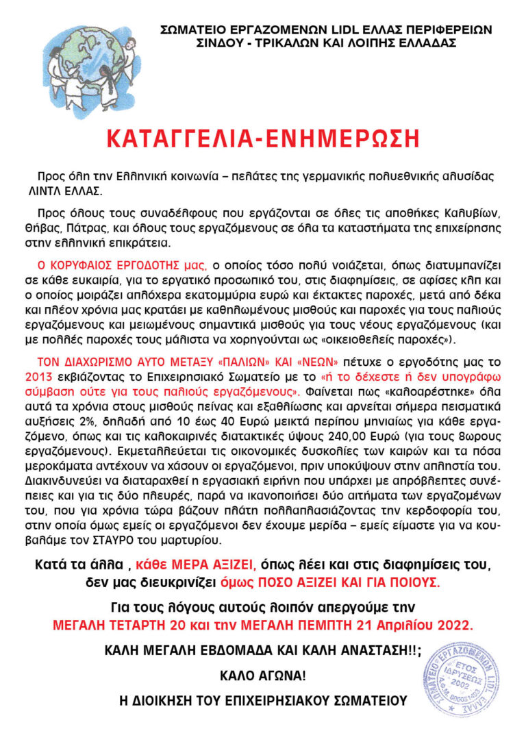 Συνέντευξη Δημήτρης Τσίρκας: Απεργία εργαζομένων Lidl Ελλάς Ράδιο ΜέΡΑ -Το Στίγμα της ΜέΡΑς 08.04.2022