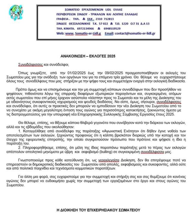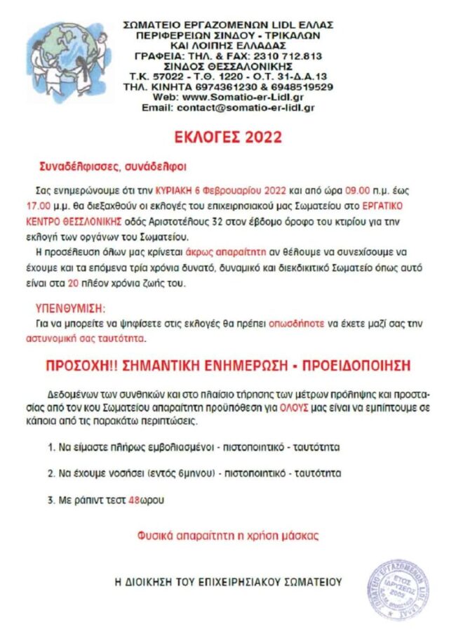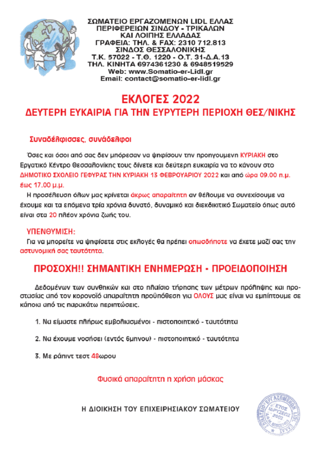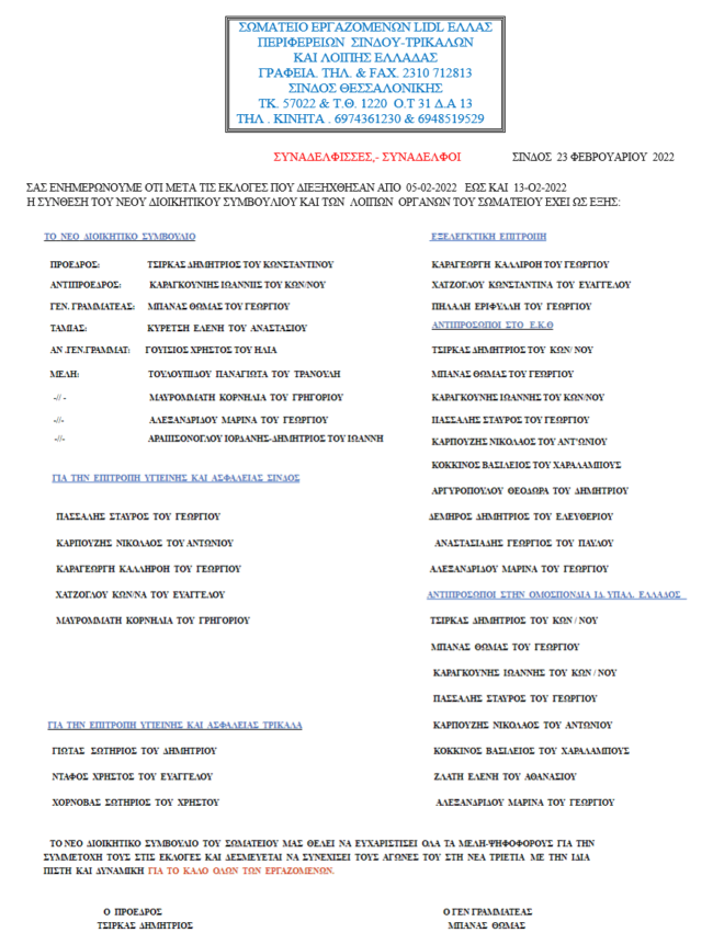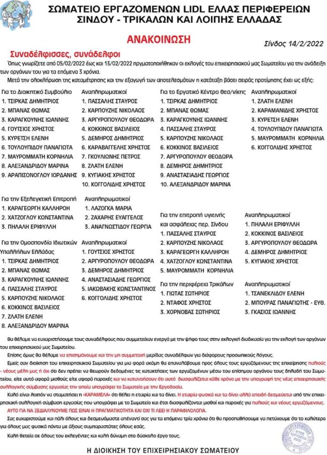 Feb242022 ΔΙΟΙΚΗΤΙΚΟ ΣΥΜΒΟΥΛΙΟ ΣΩΜΑΤΕΙΟΥ ΕΡΓΑΖΟΜΕΝΩΝ LIDL HELLAS 2022 ΑΝΑΚΟΙΝΩΣΗ, ΕΚΛΟΓΕΣBy UnionEditorFebruary 24, 2022 Details