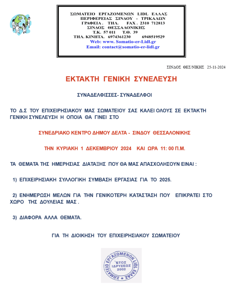 Nov252024 ΕΚΤΑΚΤΗ_ΓΕΝΙΚΗ_ΣΥΝΕΛΕΥΣΗ ΚΥΡΙΑΚΗ_01-12-2024 ΑΝΑΚΟΙΝΩΣΗ, ΓΕΝΙΚΗ ΣΥΝΕΛΕΥΣΗNovember 25, 2024 Read more