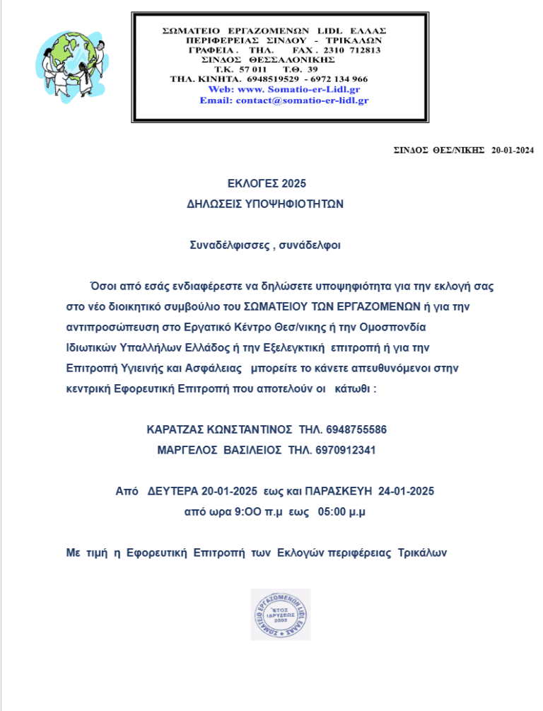 Jan202025 ΔΗΛΩΣΕΙΣ ΥΠΟΨΗΦΙΟΤΗΤΩΝ 2025 ΣΤΑ ΤΡΙΚΑΛΑ ΑΝΑΚΟΙΝΩΣΗ, ΓΕΝΙΚΗ ΣΥΝΕΛΕΥΣΗJanuary 20, 2025 Read more